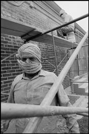 USA. Perth Amboy, New Jersey. 2000. Two workers sand blast the...