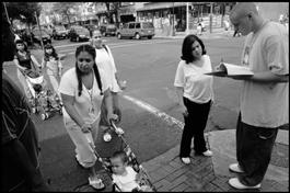 USA. Perth Amboy, New Jersey. 2000. People wait patiently, one...