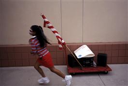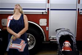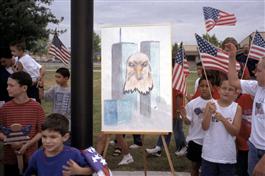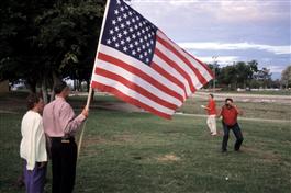 USA. Las Cruces, New Mexico. September 11, 2002. Boy at a flag...