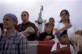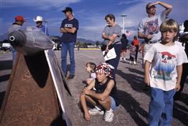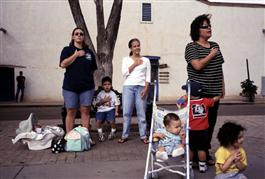 USA. Las Cruces, New Mexico. September 11, 2002. Spectators outside...
