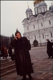 RUSSIA. Moscow. 1998. Using a cell phone infront of Dormition...