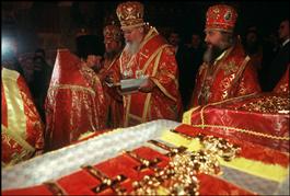 RUSSIA. Moscow. Orthodox Patriarch Alexey II at rebuilt St Saviour...