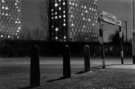 New security measures at Edmonton, London. High-rise housing estate. Night shots of towers, residents meeting, general atmosphere and portraits.