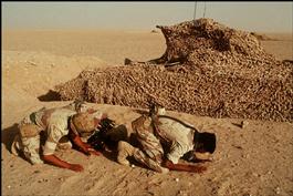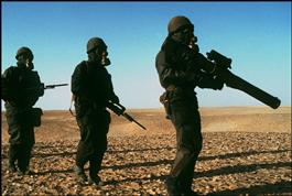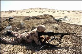 SAUDI ARABIA. October 15th, 1990. A US Marine trains in the desert....