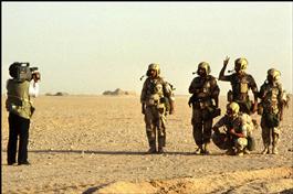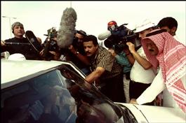 TV crews interview Koweiti refugees as they cross the border....