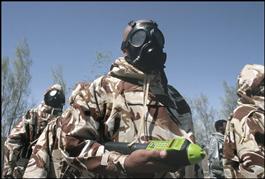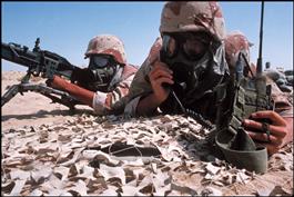 SAUDI ARABIA. A member of the French Foreign Legion during anti-chemical...
