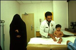 SAUDI ARABIA. 1990. Ryad. A Saudi pediatre attends to a baby...