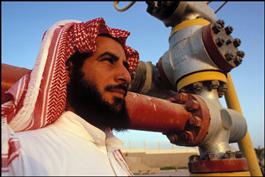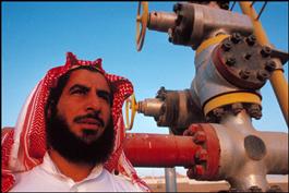 SAUDI ARABIA. 1990. Dahran. A Saudi at an oil pomp.