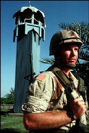 SAUDI ARABIA. 1990. Dahran. A soldier from the US Desert Shield...
