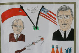 SAUDI ARABIA. Exiled Koweiti children's drawing of the invasion...