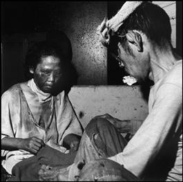 JAPAN. Hiroshima. 1945. Victims of the atomic blast are treated...