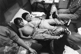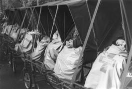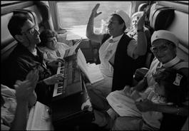 Treno per Lourdes, Italia: pellegrini che dormono.