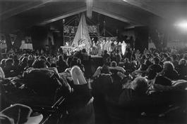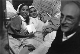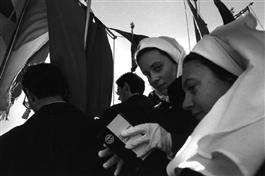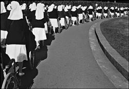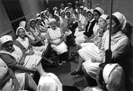 A mass of volonteer nurses in Lourdes to assist pilgrims.