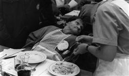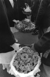 France, Lourdes pilgrims carry food offerings to the sanctuary....