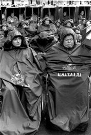 FRANCE, Lourdes: Mlati in carrozzina alla messa.
