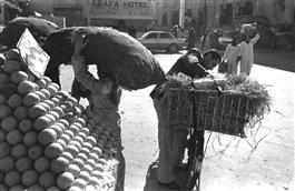 EGYPT. Cairo. 1987. A man sells live chickens, veiled women pass...