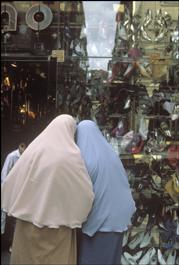 EGYPT. Cairo. Women in Islamic Hijab windowshopping. 1987.