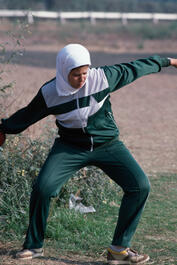 EGYPT. Women playing sports at the Guezirey stadium, some wearing...