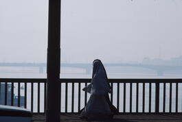EGYPT. Girl in Islamic Hijab poses in a photo studio. 1987.