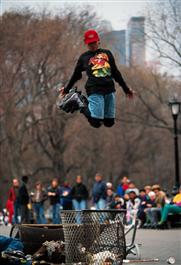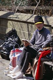 USA. New York City. 1994. Homeless man on Grand Army Plaza at...