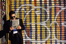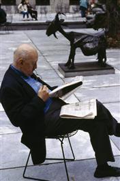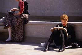 USA. New York City. 1994. Reading during lunch break, Grand Army...