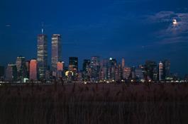 USA. New Jersey. 1994. The Manhattan skyline with the World Trade...