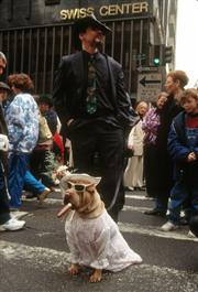 USA. New York City. 1994. Dog in costume at the Easter Parade...
