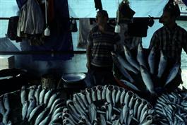 TURKEY. Istanbul. 1998. A fish market along the Asian side of...
