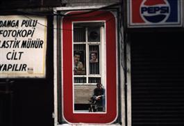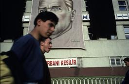 TURKEY. Ankara. 1998. Passing an Atatuk wall hanging.