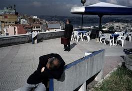 TURKEY. Istanbul. 1998. A man sleeps above the Golden Horn.
