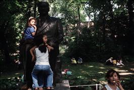 TURKEY. Istanbul. 1998. Children play on an Ataturk staute in...