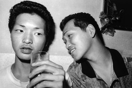 JAPAN. Kamonomiya. 1999. Shinichi passing out at bar. Shinichi...