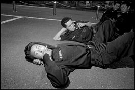 Female company is rare when the gangs gather. When the Bosozoku go out to the bars, game arcades, etc it is predominantly between men and women are the brunt of jokes. In this male universe, it is surprising to see the physical closeness that goes on between the members, especially since these kids are willing and able to fight to the death to protect their role in society.