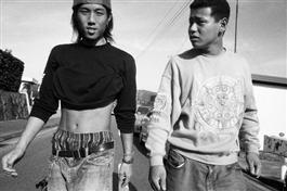 JAPAN. Kamonomiya. 1999. Sasuke & Kenta relaxing during a motorcycle...