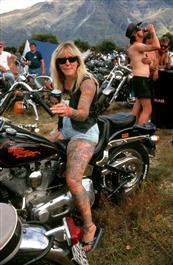 New Zealand. Woman biker.Near Glenorcy. South Island. 1996.