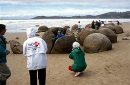 New Zealand. Moeraki Boulders at Hamden beach. Maori name Te...