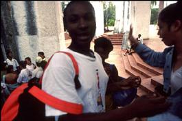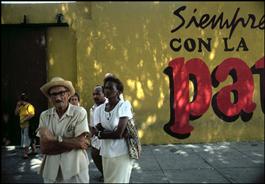 people at a busstation on the Avenida de las Misiones.Havana.1993...