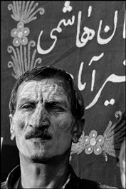 IRAN. Khorramabad. On Ashura, a penitent's face is covered with...