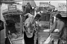 INDIA. Kashmir province. Near the lake Dal near Srinagar. Shikara...