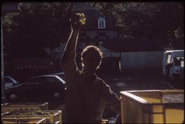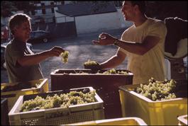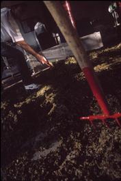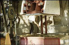 Avize: Pressing grapes at the Anselme Selosse champagne production....