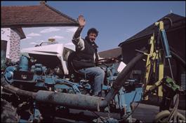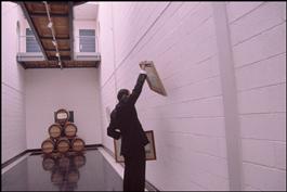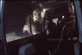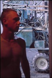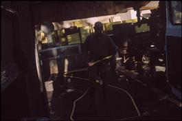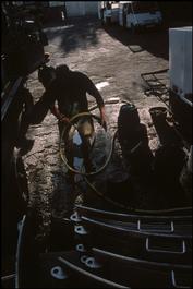 Avize: Washing the pressing machine at the Anselme Selosse champagne...