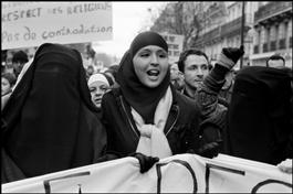 FRANCE. Paris. A young woman, wearing the nigab (veil and a face...