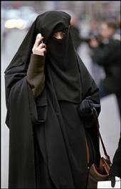 FRANCE. 2006. Paris. A young woman, wearing the nigab, the veil...