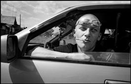 RUSSIA. 70 kilometers from Yekaterinenburg. 2010. Man in car...