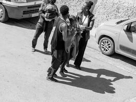 ITALY. Lampedusa. May 27, 2025. Migrants just arrived reciving...