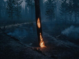 RUSSIA. Siberia. 05 July 2021. Burning tree, close to the settlement...