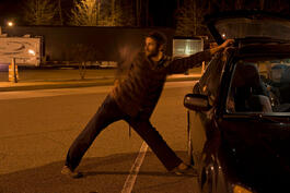 USA. N Palo Pinto. TX. 2016. Backing up at 10 N Palo Pinto TX...