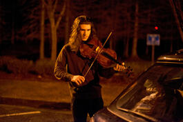 USA. Fabens, NM. 2016. Edwin Hernandez hanging from tree. He...