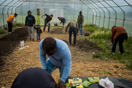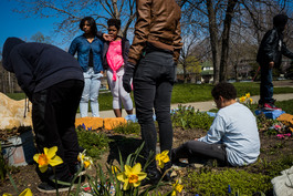 USA. Cleveland. 2016. Velma Scott’s community garden, showing...