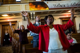 USA. Cleveland. 2016. Service at Pentecostal Church of Christ....